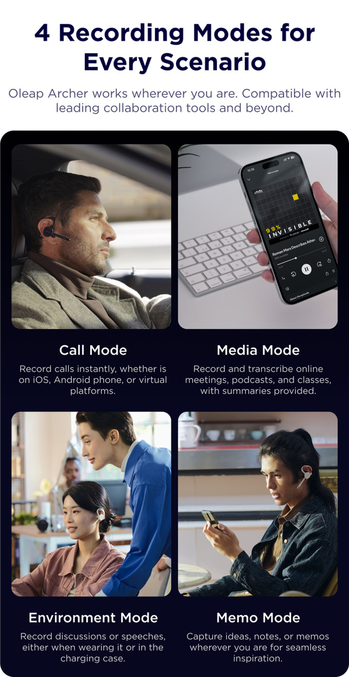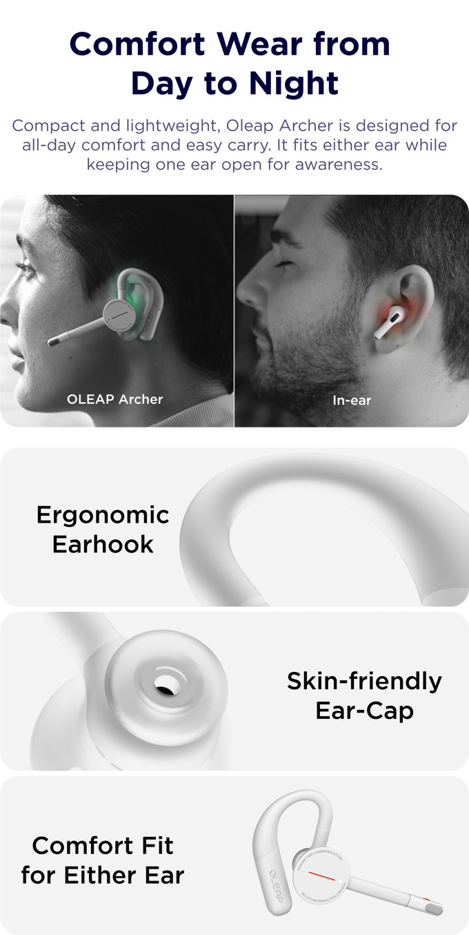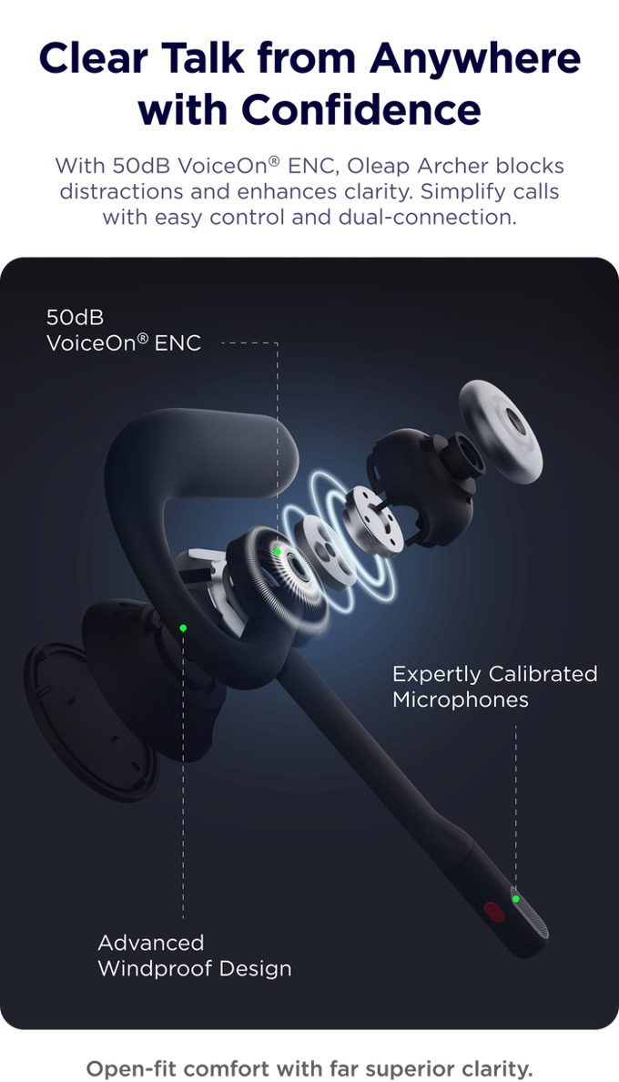 With 50db VoiceON ENC, Oleap Archer Blocks distractions and enhances clarity. Simplify calls with easy control and dual-connection.