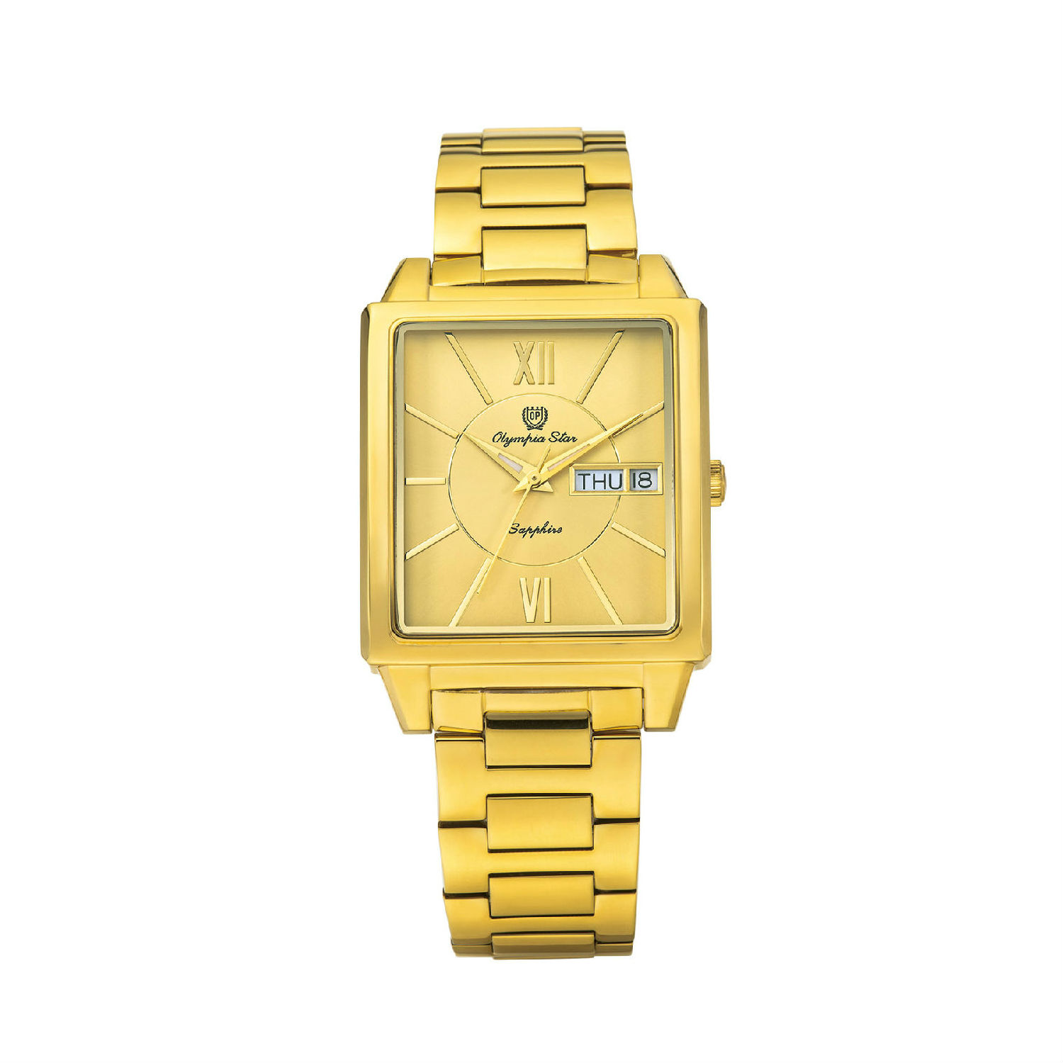 This extra precious timepiece boasts a style that stands the test of time. Crafted with a unique rectangular case, this tasteful accessory encloses an absolutely legible dial with stick hour markers and two Roman markers at 12 and 6. With a date and day-of-the-week display added to 3 o’clock position, this watch provides additional information for added convenience.