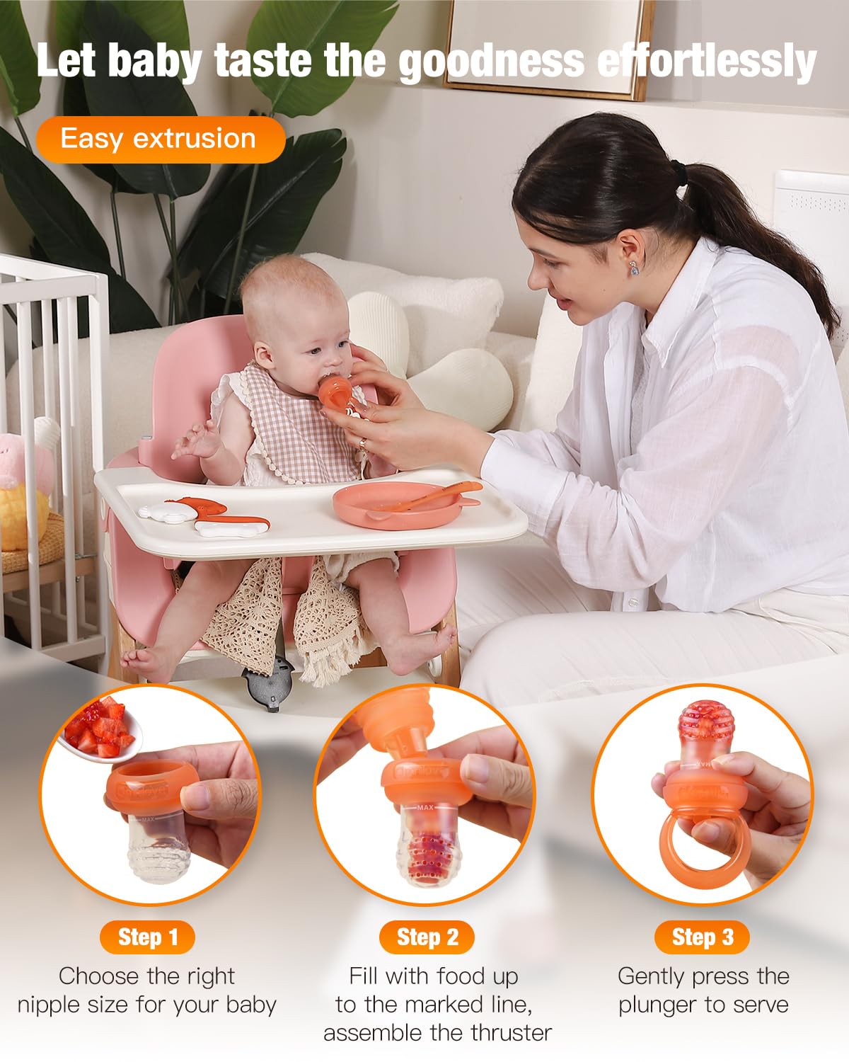 Complete Feeding Solution for Growing Babies – Safe, Practical, and Gift-Ready. From teething to first bites, this feeder grows with your baby. Made with BPA-free, PVC-free, and phthalate-free materials, it meets all safety standards and offers peace of mind with every bite. It’s not just a feeder—it’s a loving gift for any baby registry search and a smart pick for parents building their list of newborn essentials must haves.