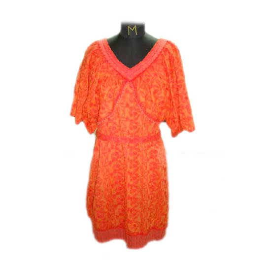 This appealing one-piece dress comes in a mandarin hue, presenting a delightful accent. It is gracefully designed with floral embroidery for a touch of elegance. The bell sleeves add a beautiful flare to this ladies’ dress.