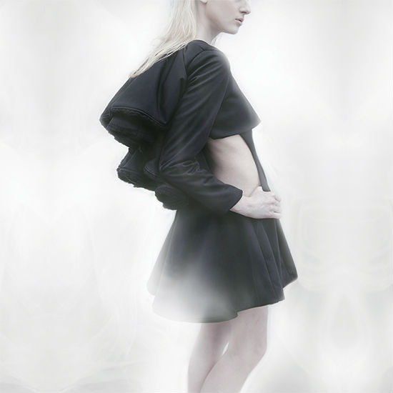The displayed one piece dress will bring supreme head-turning effects to any look. The allover black dress features brilliant layered draping over the back and cutouts at the side of the waist. Luxuriously finished with 100% silk organza lining, the dress gives an impeccably striking look while fitting the body smoothly.
