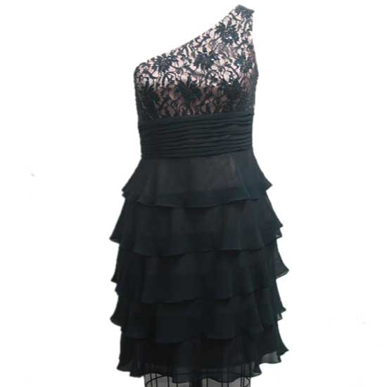 This decent black party dress comes with a single shoulder design for an asymmetric beauty. Ruched waistband highlights the well-tailored bodice for a flattering fit. The charming party dress also features layered skirt for an added fluttering touch.