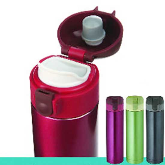 This is a series of one-touch mugs that is available in different vibrant colors. It has a super thin vacuum layer of 1.0mm for excellent temperature retention. This user-friendly mug is ideal for school and office use.