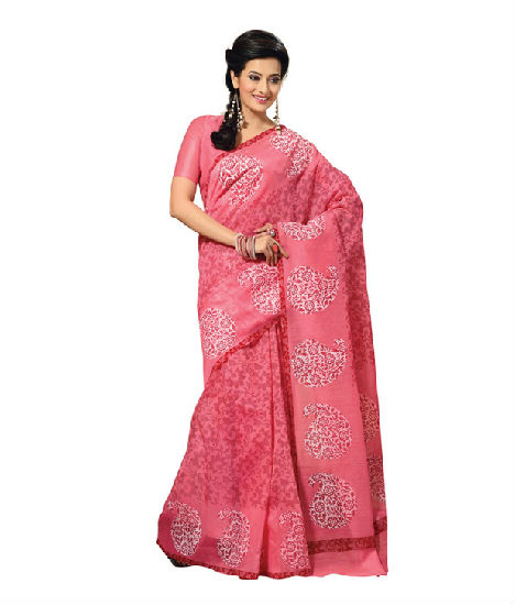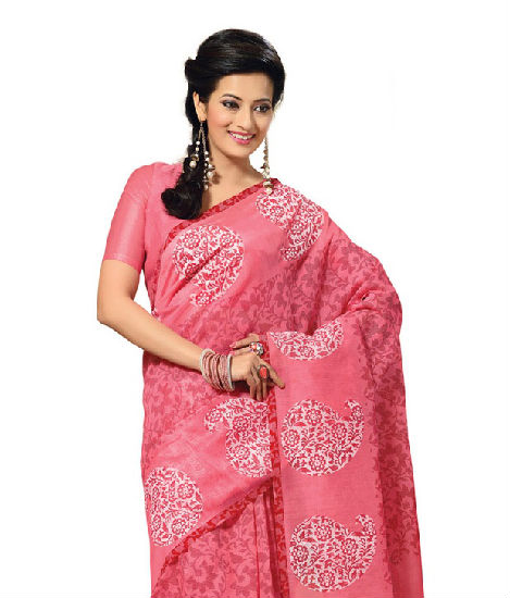 A collection beyond time could travel is here and we have for you this lovely pink colored saree and blouse based in cotton fabric and glorified by the subtle yet outstanding floral print. Its a truly feminine design and if you like pink there is nothing more to think. Wear it mesmerize all your viewers.