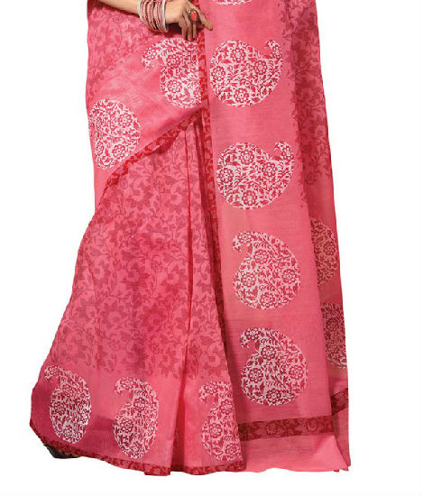 Fabdeal Daily Wear Pink Floral Print Cotton Saree/Sari