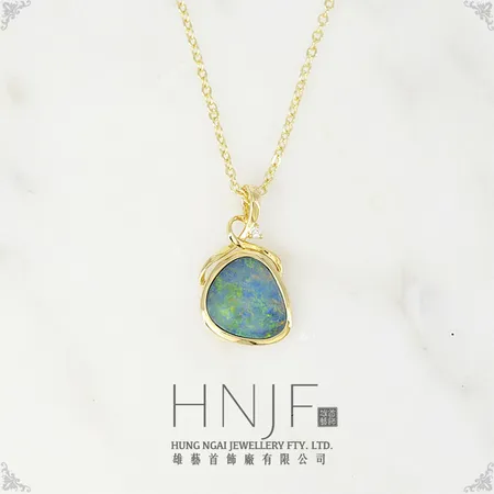 • Material: 14k yellow gold (1.40g), Australia doublet opal (2.70ct) and diamonds.