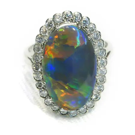 This opal ring wows with style and elegance with the centered opal. The oval opal radiates with an iridescent color that captivates your eyes at an instant. Lost in this pretty blend of colors in a quiet night with this antique ring on your finger.