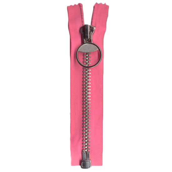 This open-ended zipper comes in an eye-catching pink color which accents an energetic look on your clothes and handbags. The zip puller features a round loop, showcasing an adorable touch and suggesting an easy control on the zipper. This zipper bestows smooth up and down movements with its delicately made teeth and slider. This zipper is surely a nice item for your garment and handbag.