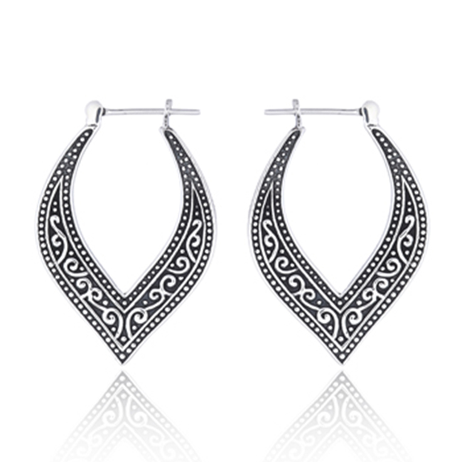Opened Marquise Vintage Hoop Earrings by Silver 925