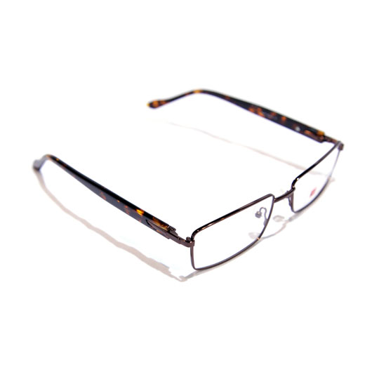 This is an optical frame that comes in a fashionable design. The thin stainless steel rims are coupled with wide acetate temples in a tortoise pattern. This stylish optical frame is great for daily wear.