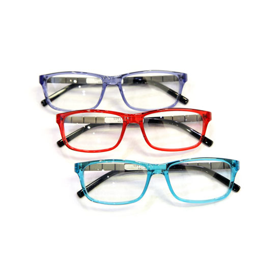 This is a series of optical frames that comes in three colors. Made of acetate, the frames are lightweight and comfortable. These high quality optical frames are great for daily wear.