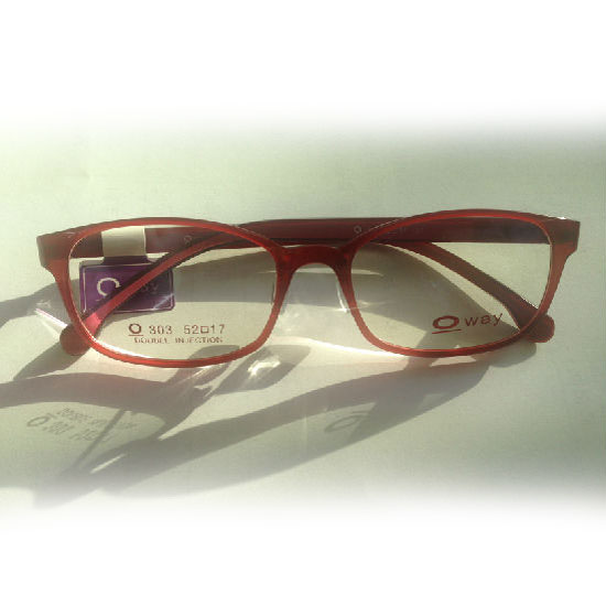 This optical frame in red comes with a long and slightly curved rectangular shape. The simple style is modest yet eye-catching. This double-injected frame is professionally made to maximize your wearing comfort.