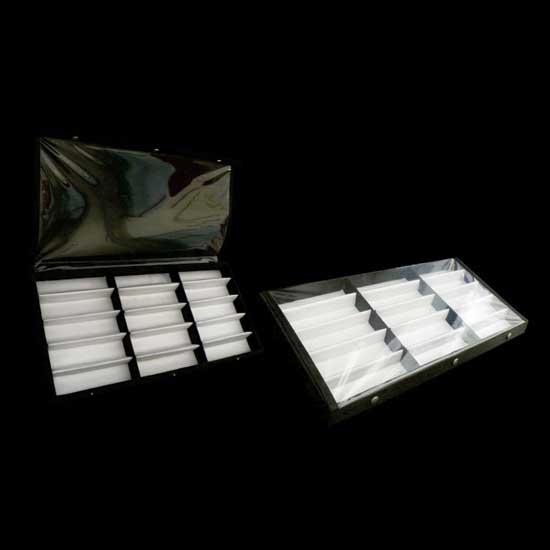 This highlighted optical tray features a window-top design. Featuring 15 well-arranged compartments, this optical tray is great for display use. This presented optical tray is convenient to use.
