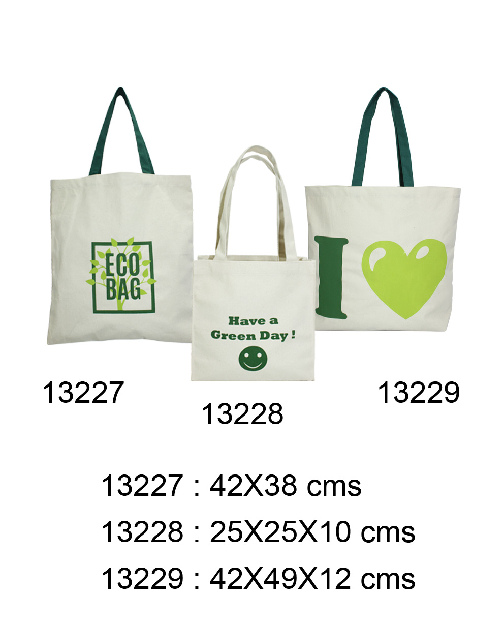 13229 - size - 42X49XBG 12 CMS made with 10 ozs natural Organic Cotton and 10 ozs Dyed Organic Cotton with 60 CMS Self handle.