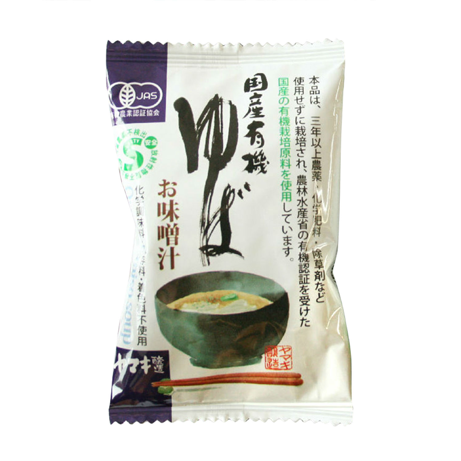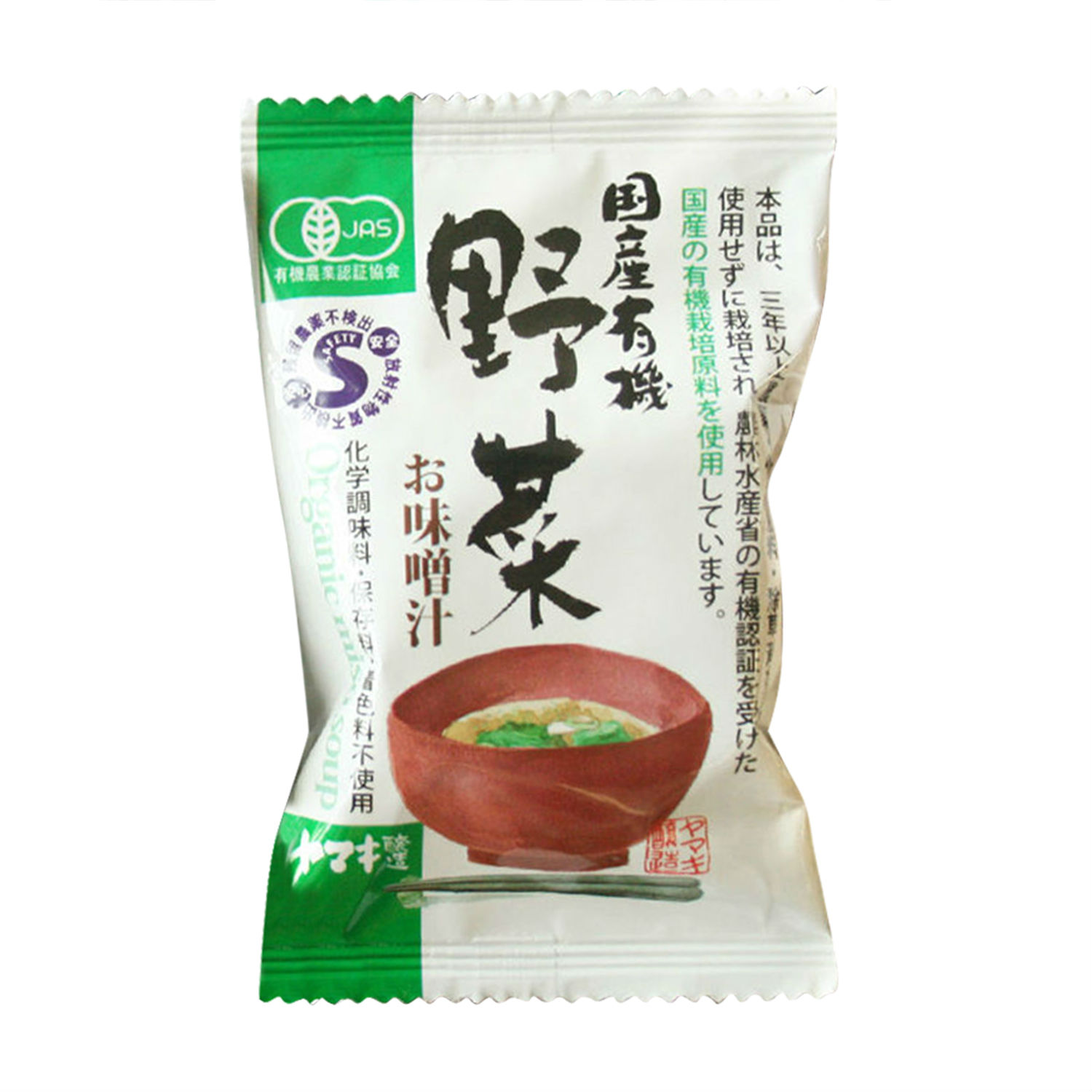 You may instantly enjoy delicious, healthy, and organic miso soup just by adding hot water. Made in Japan using all Japan produced ingredients. Does not include any artificial flavors or preservatives. Directions: Put freeze-dried miso soup in a cup, add boiling water (approx. 160ml), mix and enjoy. Ingredients: Vegetable topping Organic cabbage, organic Japanese mustard spinach, organic rice-miso, organic barley-miso, organic onions, organic Japanese leek, yeast extract, salt, maltose, dried bonito powder, dried sardines powder, kelp powder Soy milk skin and vegetable topping Organic soy milk skin, organic Japanese mustard spinach, organic rice-miso, organic barley-miso, organic Japanese leek, yeast extract, salt, maltose, dried bonito powder, dried sardines powder, kelp powder Shelf life: One year The miso used in this miso soup is made from organic soybeans, organic rice or barley, and sun-dried sea salt. These ingredients were fermented by the traditional method that has been passed down since ancient times, and matured for months or years in classical wooden barrels. The soy milk skin is made from organic soy and natural spring water. It's solidified protein from the soy, so it is very nutritious and traditionally used as a source of protein in vegetarian dishes for monks. It forms on top of heated soy milk, which must be collected one layer at a time. The water we use is well-known natural spring water from the heights of a local mountain. It is mellow soft water that contains a good balance of minerals. The organic soybeans, rice, barley and vegetables are made by our group agricultural corporation, whom the representative has been practicing natural farming for over 60 years spanning two generations of farmers. The salt is sun-dried sea salt, rich in minerals. It has a complex flavor mixing of bitter, sweet, and "umami" (savory) tastes, enhancing the flavor of the other ingredients.