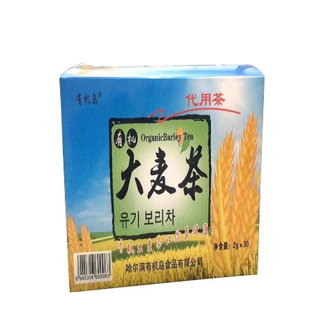 Barley tea: Roasted organic barley, made by soaking. It has a coffee like aroma. Free of theophylline ,caffeine, tannin, etc. Does not affect sleep. Both hot and cold drinks.