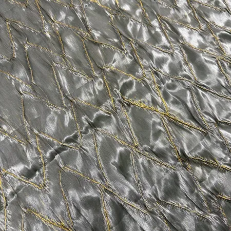 High-quality organza that captivates with its exquisite beauty and functionality. The material features a liquid steel effect, creating the illusion of fluidity and flexibility, making it ideal for crafting fashionable and stylish pieces. It is adorned with diamond-pattern embroidery, offering breathability and a pleasantly tactile feel.