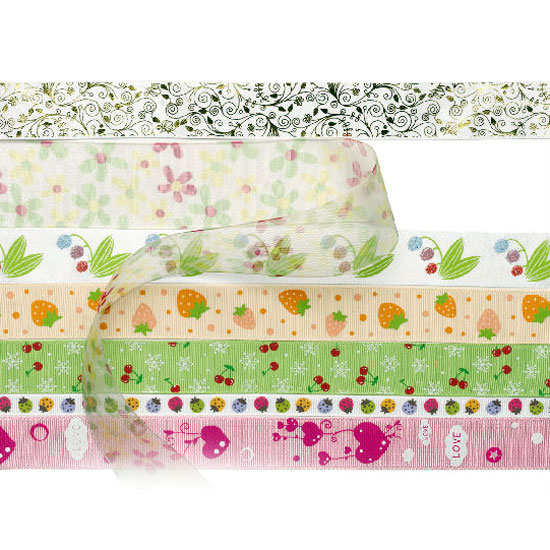 This is a collection of organza ribbons that comes in assorted colors. With printed patterns, these ribbons are beautiful and colorful. These high quality ribbons are great for decorative usage.