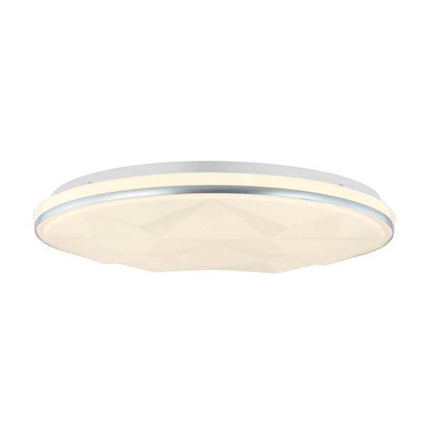 This is a circular ceiling light. The edge of the lamp body is in light colors, and a slender silver - colored decorative strip is set near the edge, adding a sense of refinement. The central light - emitting area slightly protrudes, and its surface has a texture similar to diamond - cut, which can softly scatter light. The overall style is simple and full of design sense, suitable for installation in home spaces such as living rooms and bedrooms, creating a warm, comfortable and stylish lighting atmosphere, fitting home decoration styles like modern minimalist and Nordic styles.