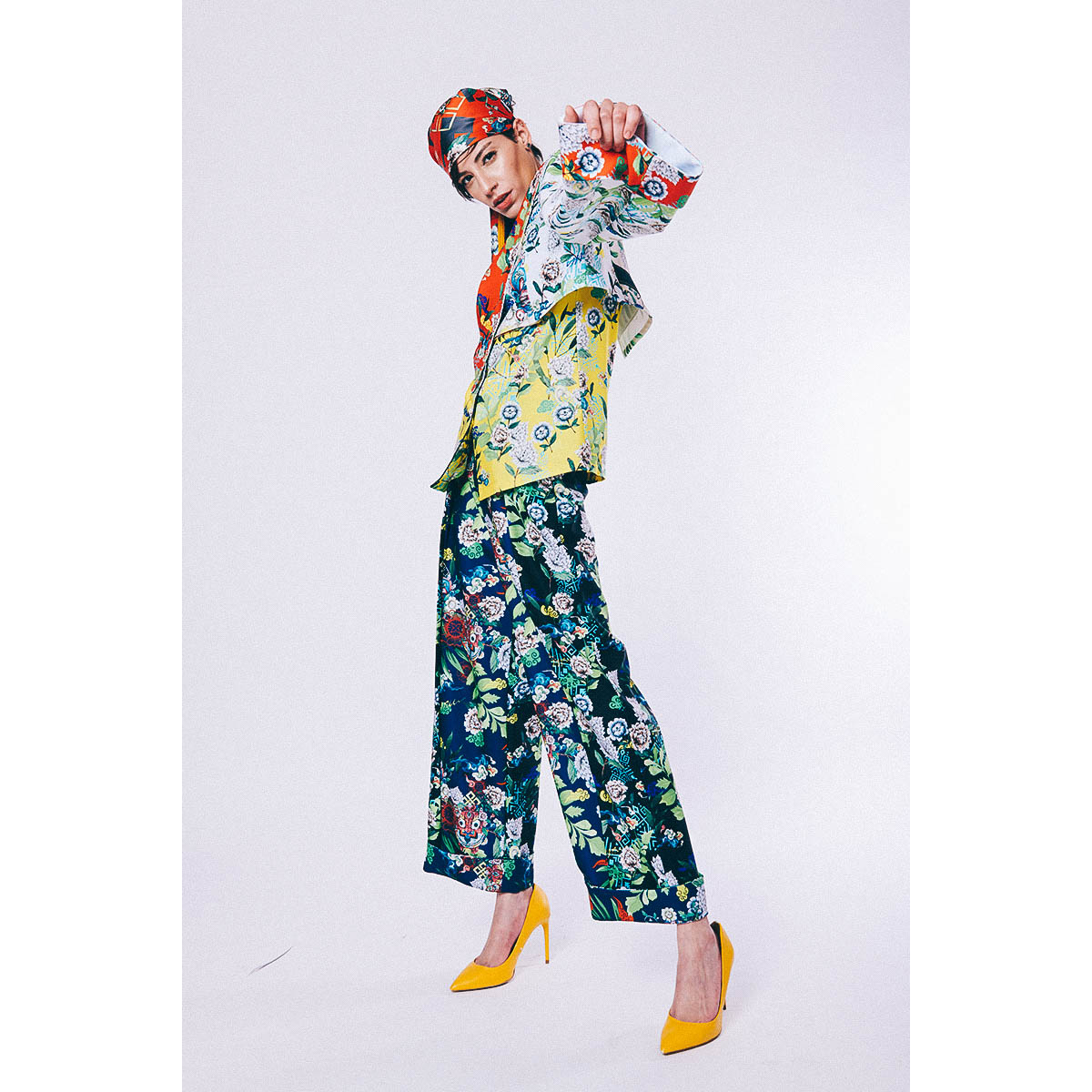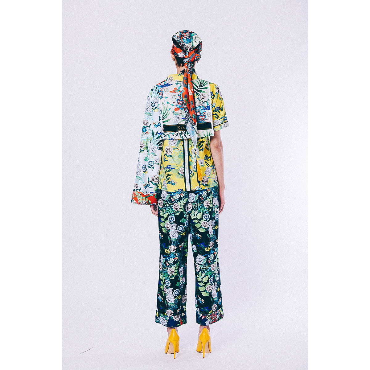 These oriental style pants are presented in Thangka floral printed pattern, which is made from polyester for an ethnic style. They have a wide silhouette that sits high on the waist and cropped design to suit petite women. Style it with SAAMU TB Slash Shirt to complete the look.