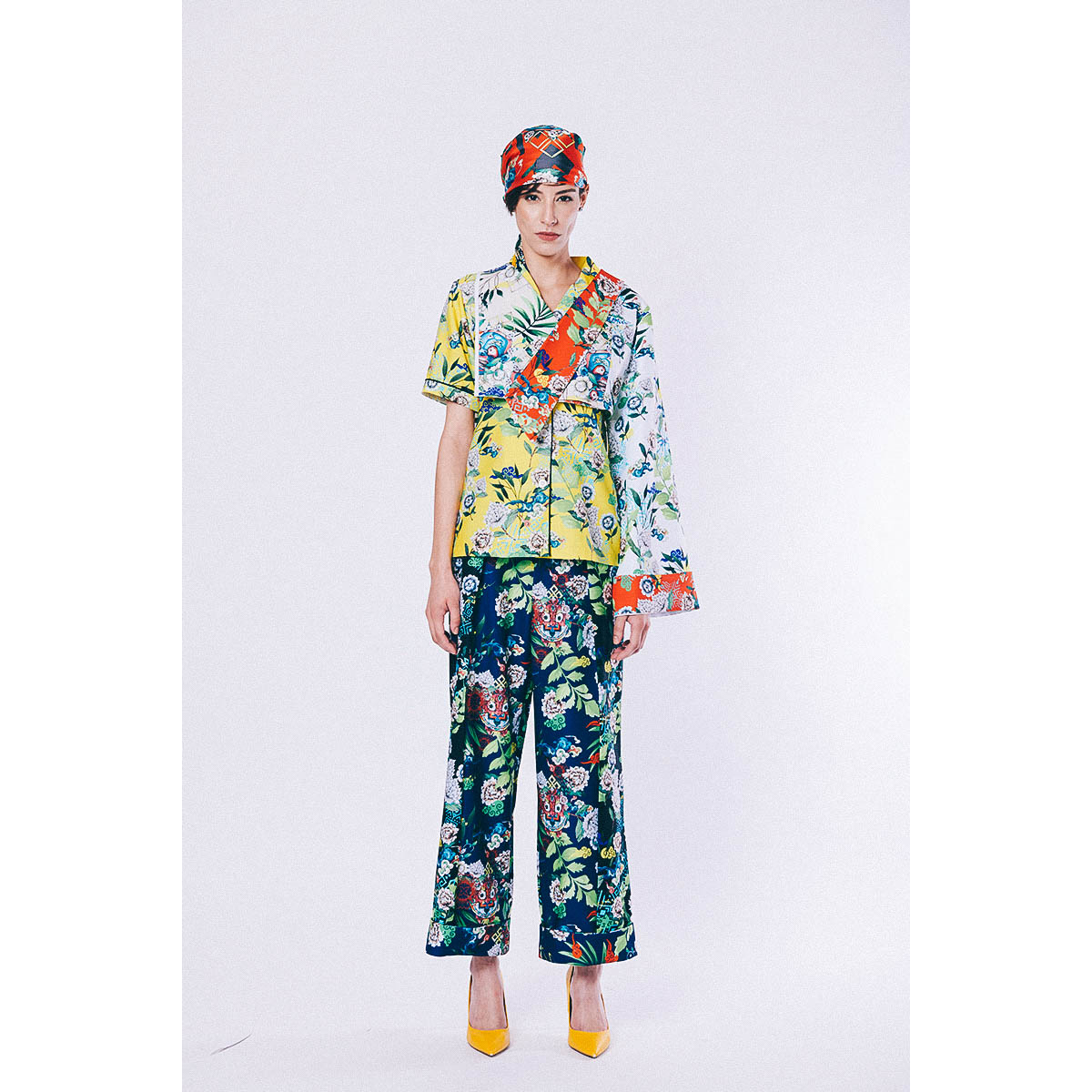 This collection is inspired by “Tibetan culture” which has a unique cultural element that makes this design one-of-a-kind. The Tibetan mask and Thangka pattern are redrawn by hands with engraving drawing techniques to create our fabric printing. Also, in the clothing design, it uses the silhouette of Tibetan traditional costumes to turn it into a contemporary design combined with the characteristic of SAAMU."