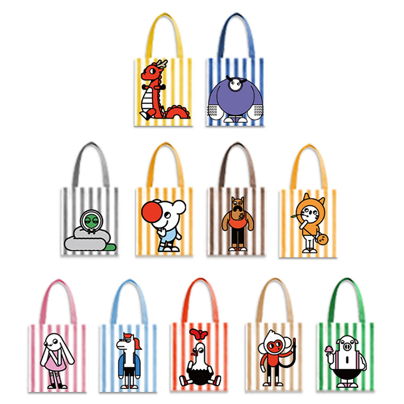 Original Design Striped Canvas Tote Bag with Chinese Zodiac Signs