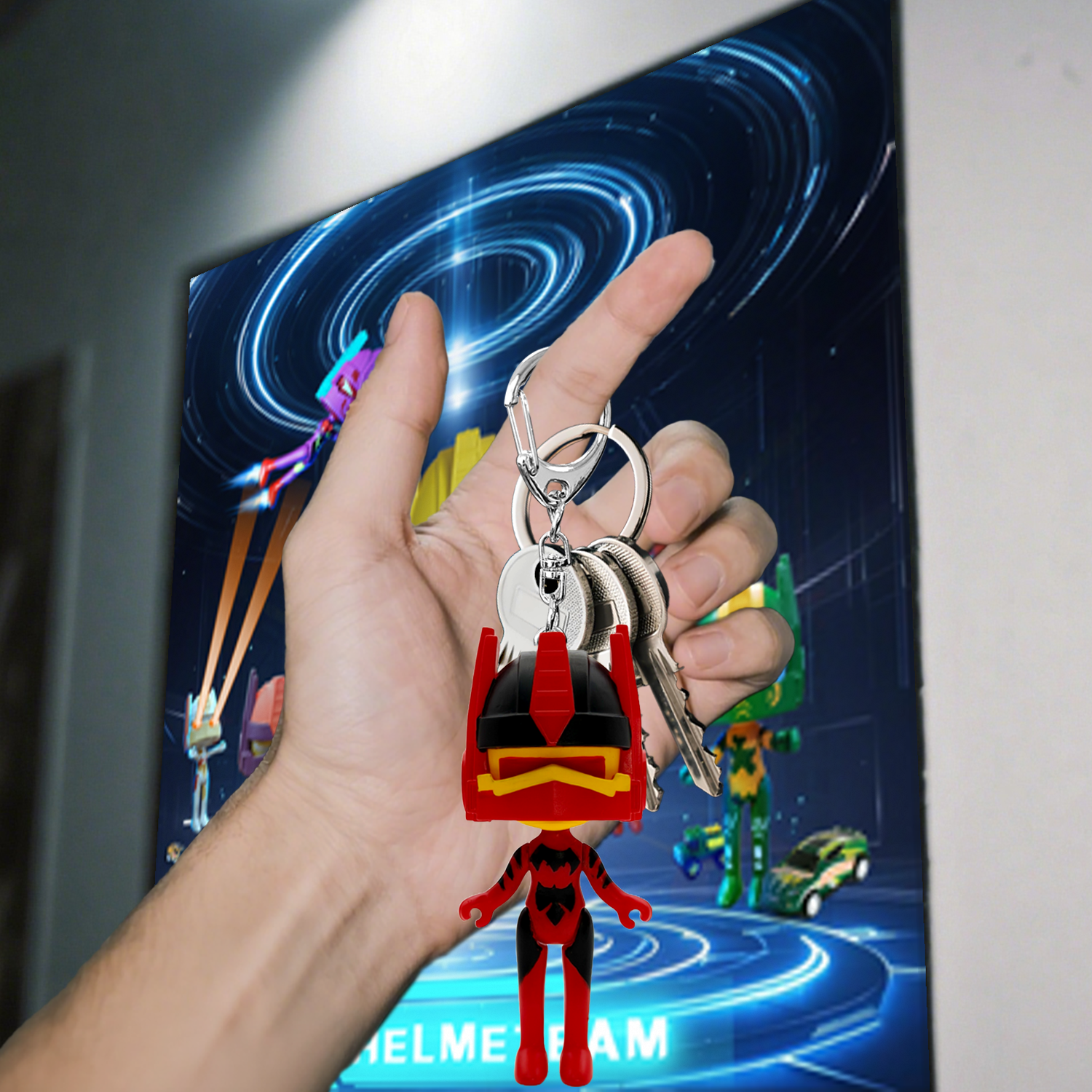 Original Helmet Team Blaze PVC Keychain, Metal Alloy Collectible Car & Bag Pendant, Action Figure Gift for Kids