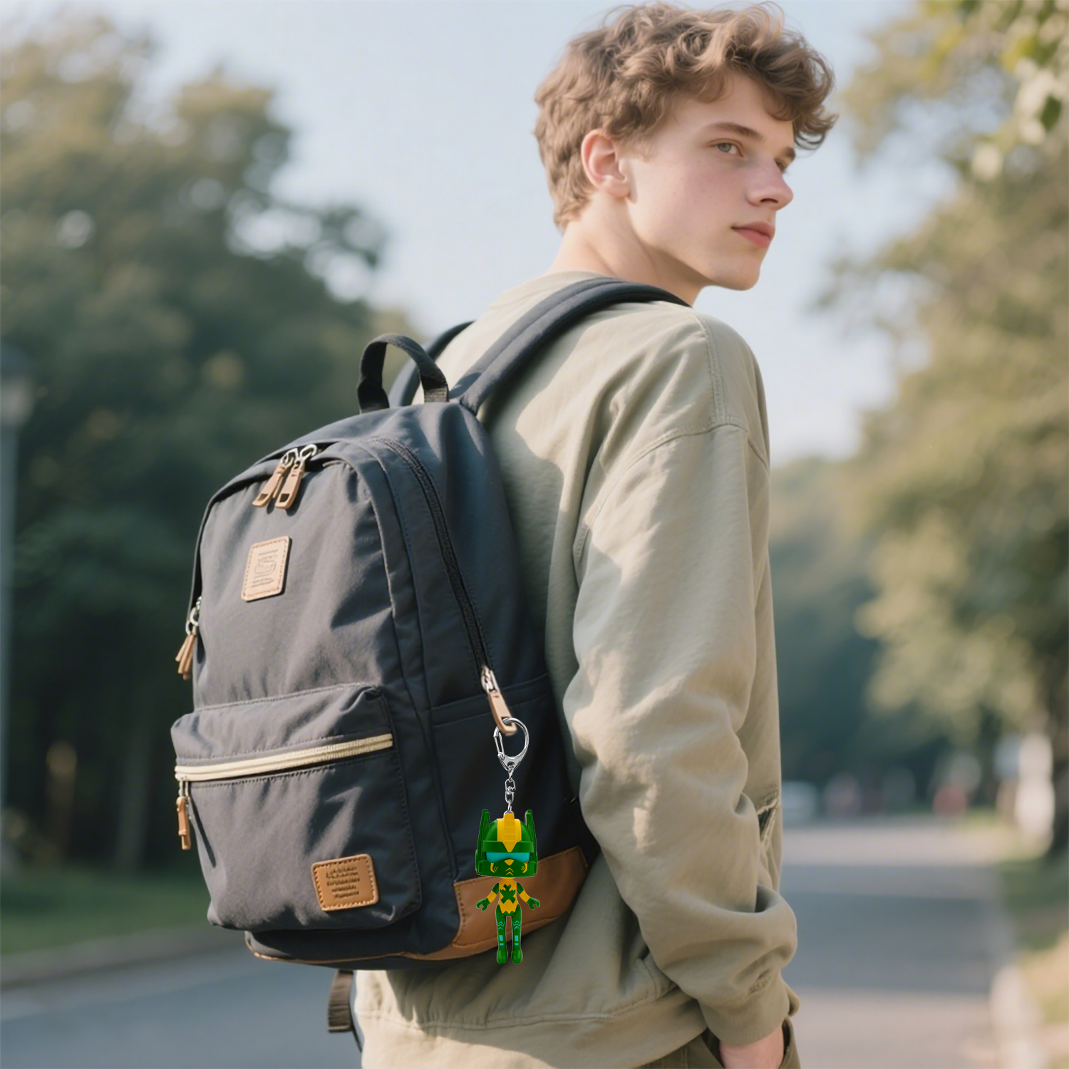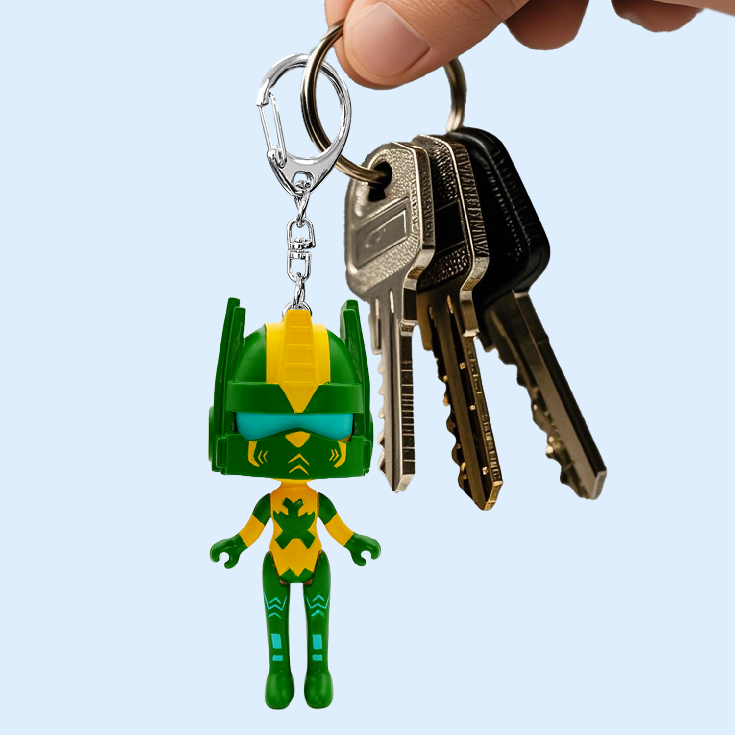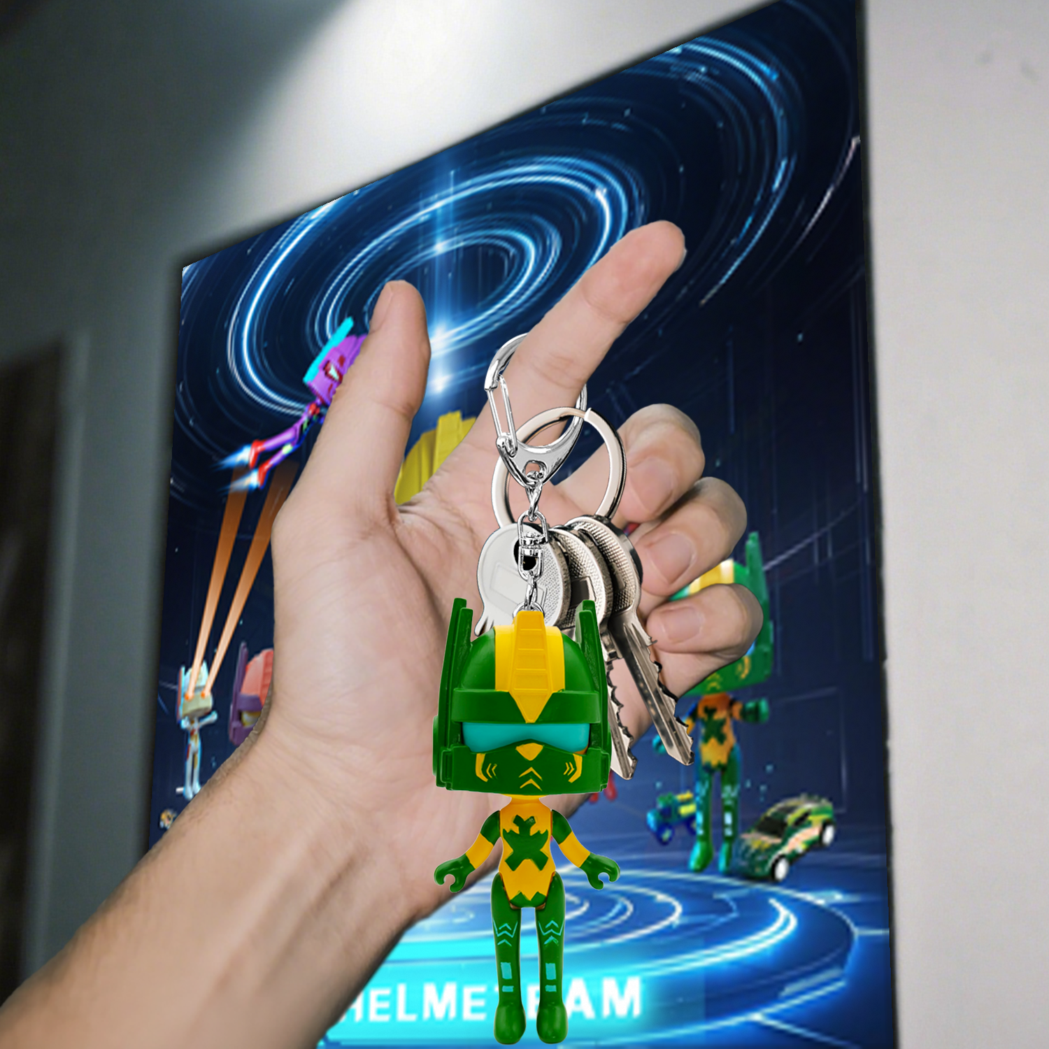 Original Helmet Team Emerald PVC Figure Keychain, Forest Theme Zinc Alloy Carabiner, Custom Promotional Gift for Bulk Wholesale