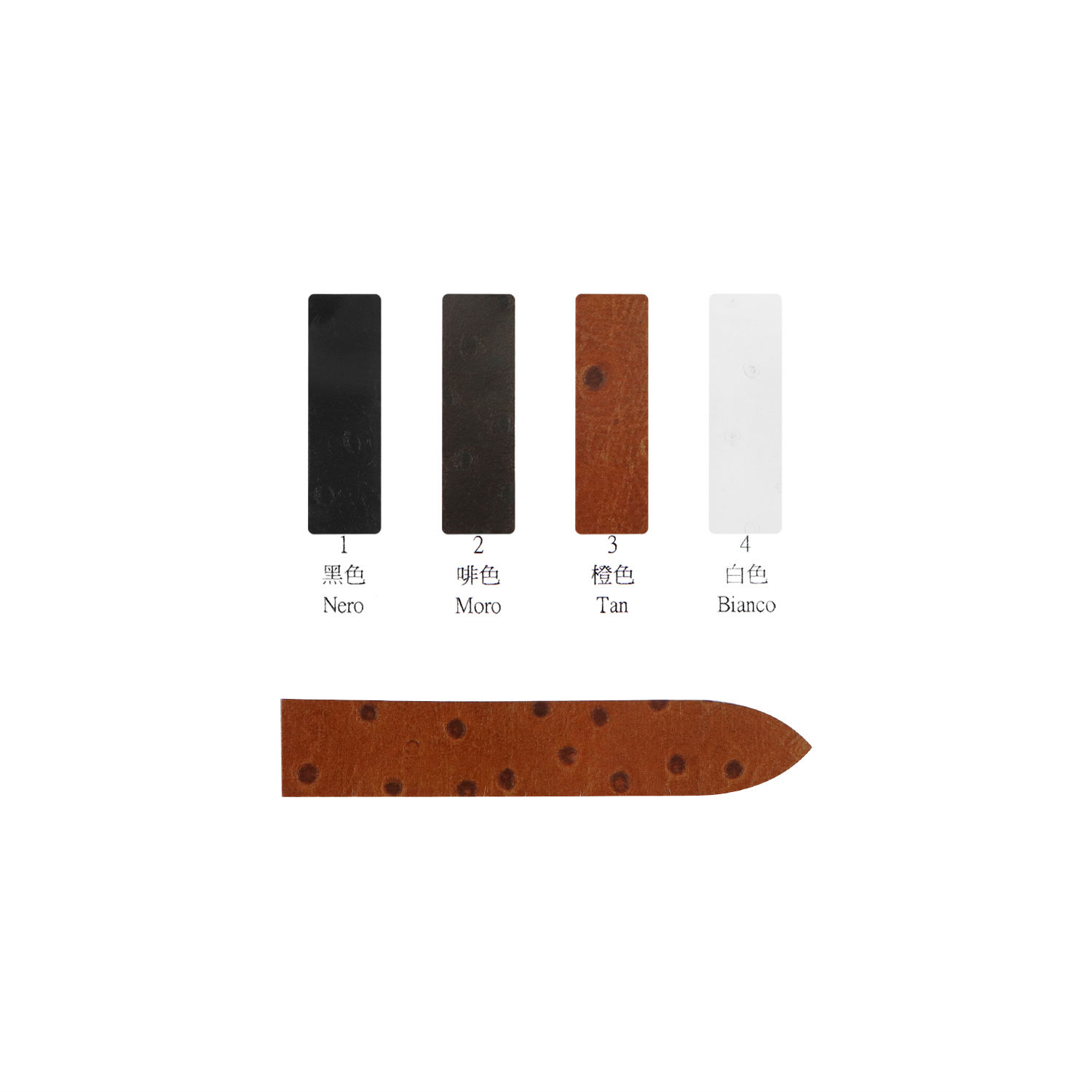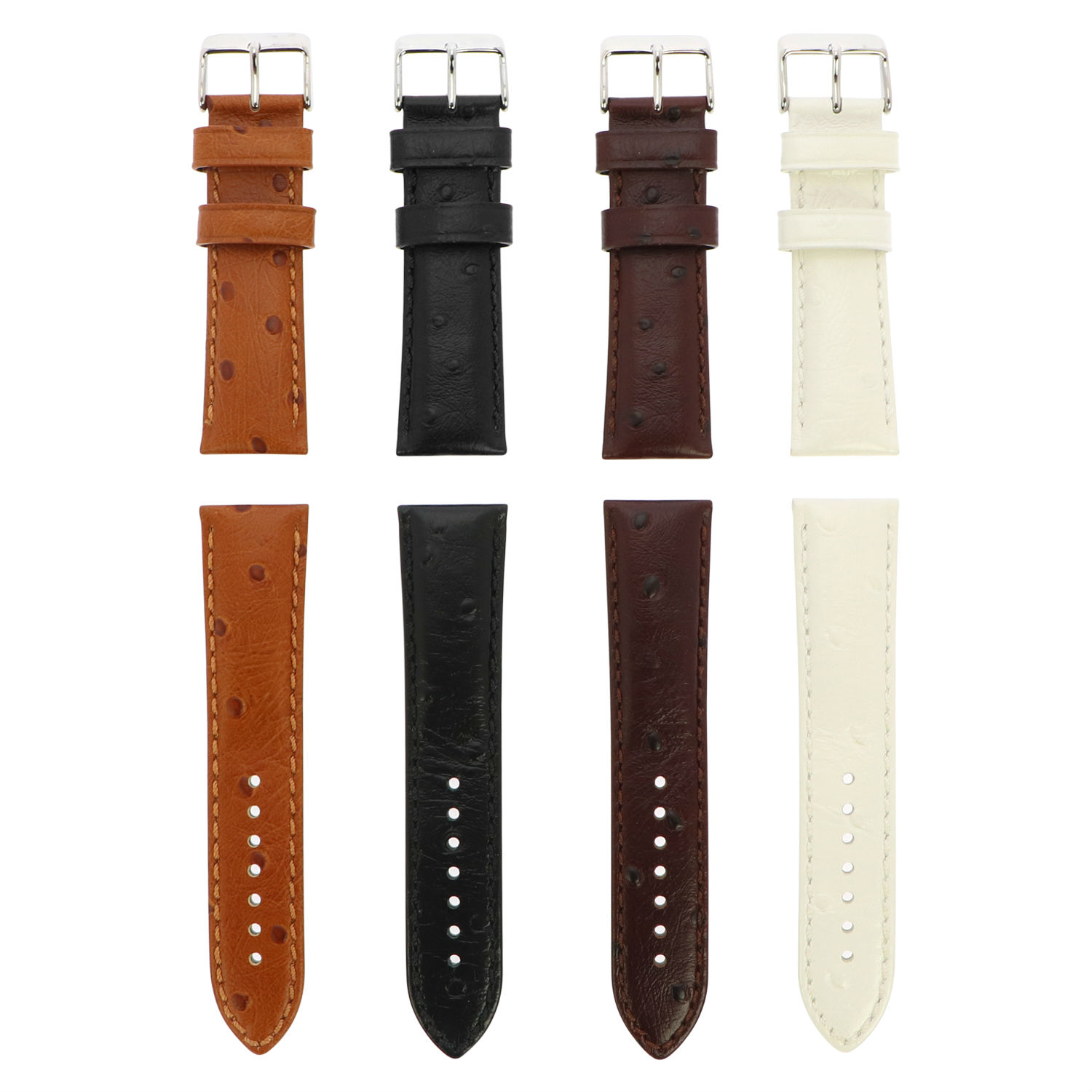 - A leather watch strap embossed with an ostrich skin pattern (African Ostrich #338).
