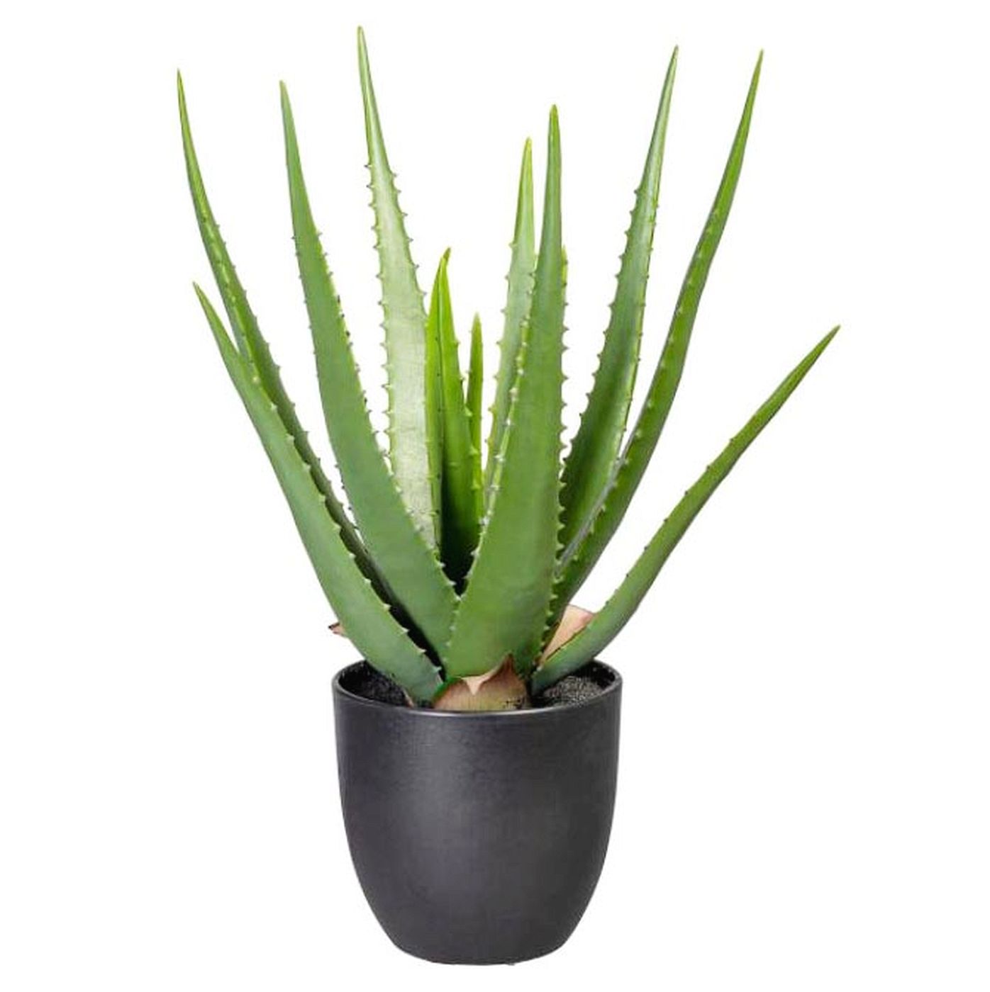 The outdoor artificial aloe UV against on a plastic base. This artificial plant is made of plastic which is weather and UV-resistant. It is a good display to your home and office.