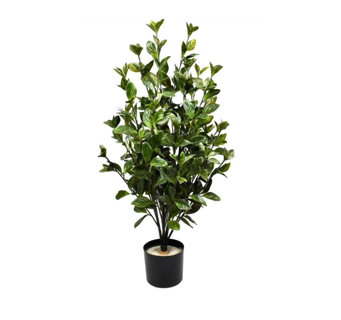 The outdoor artificial bay leaf tree on a plastic base. This artificial tree is made of plastic which is weather and UV-resistant. It is a good display to your home and office.