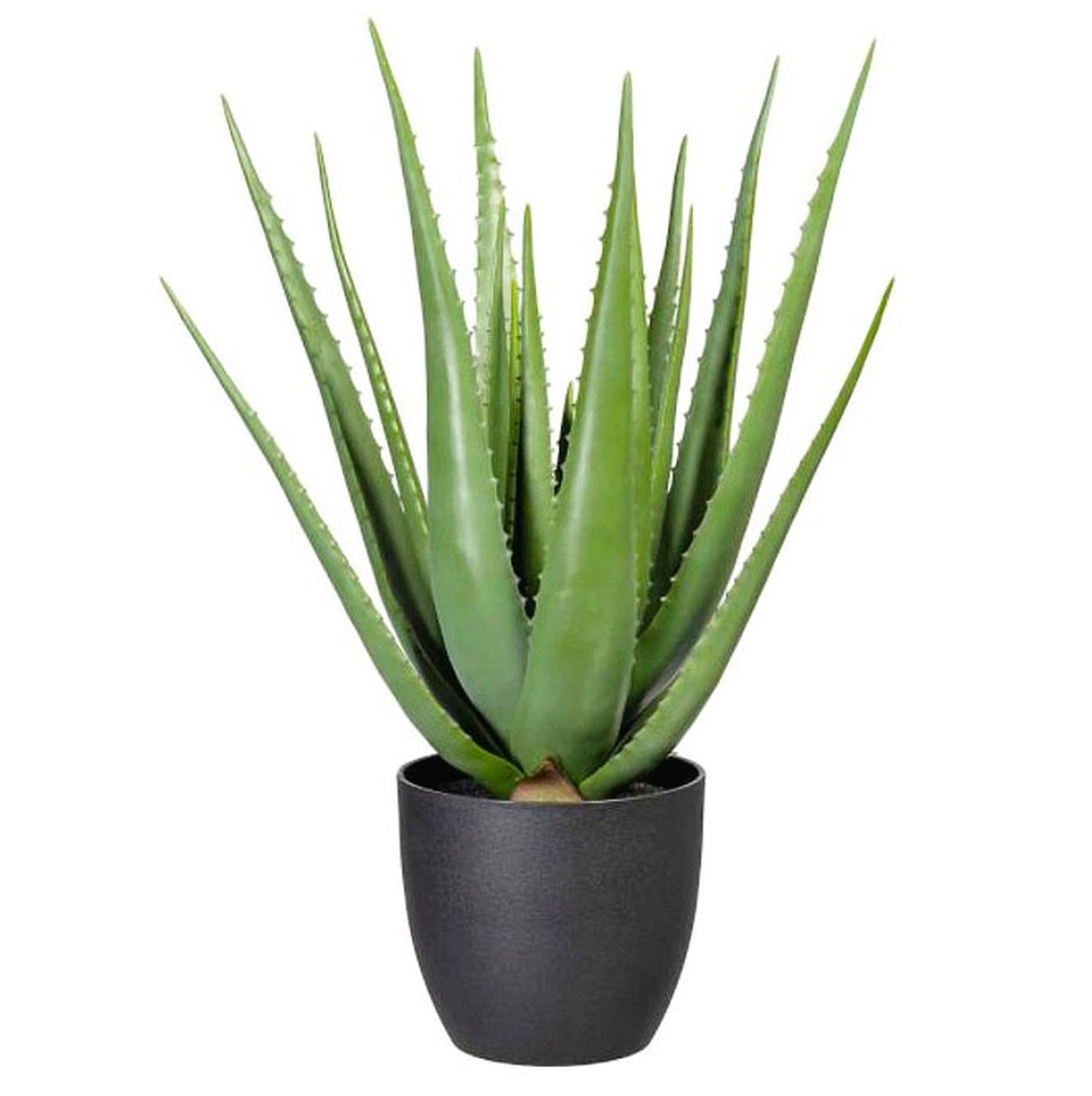 The outdoor artificial plant aloe green edge UV against on a plastic base. This artificial plant is made of plastic which is weather and UV-resistant. It is a good display to your home and office.
