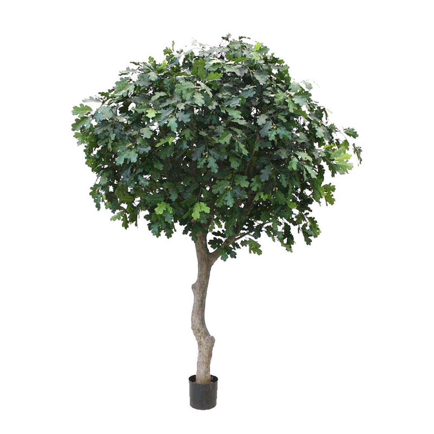 This artificial oak tree is made of plastic. It creates a green accent to beautify the space. It is a good decoration for your home or workplace.