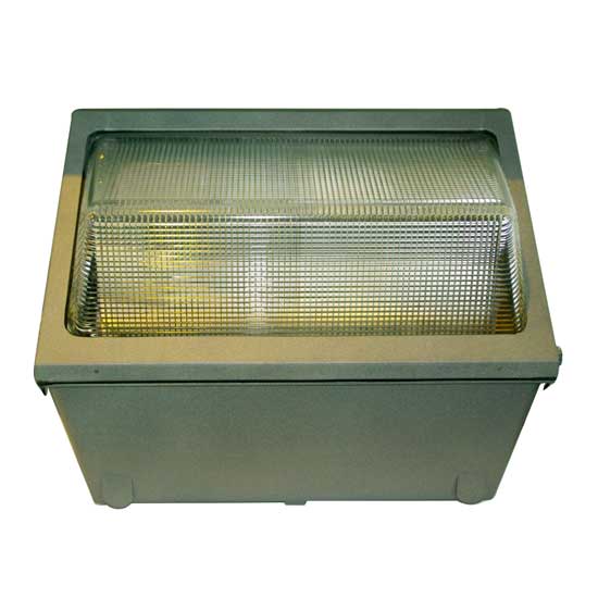 Highlighted is an outdoor floodlight with a robust construction for guaranteed performance. The housing is made of high-quality die-cast aluminum, providing reliable protection for the inner components. The grid-patterned shade enhances the performance in illumination.