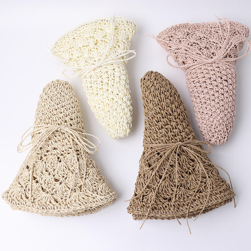 Made of 90% paper straw and 10 % polyester. Straw material. Soft comfortable and breathable to wear.