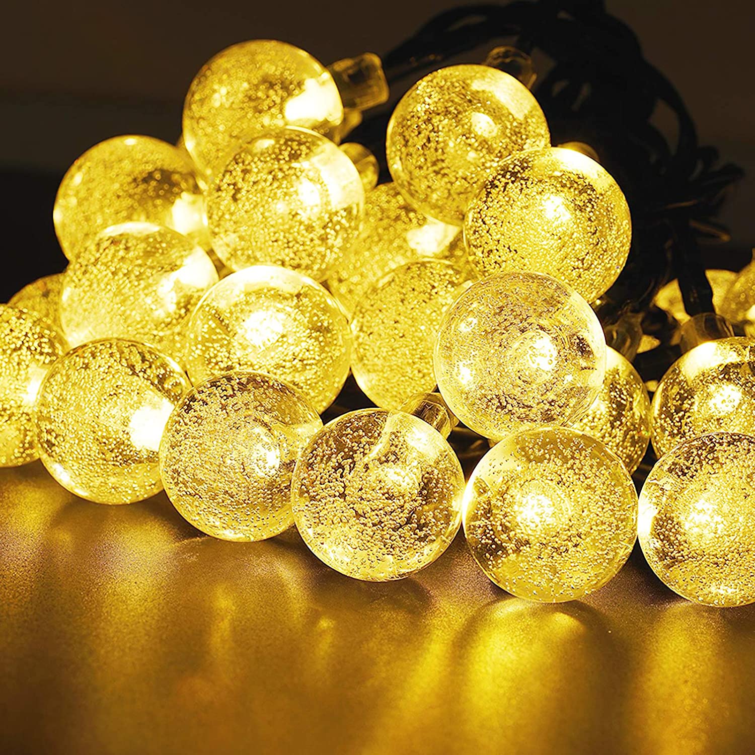 Outdoor Garden Camping Waterproof 16ft Solar Crystal Ball Lights 8 Lighting Modes Holiday Decoration 30 LED Solar String Lights