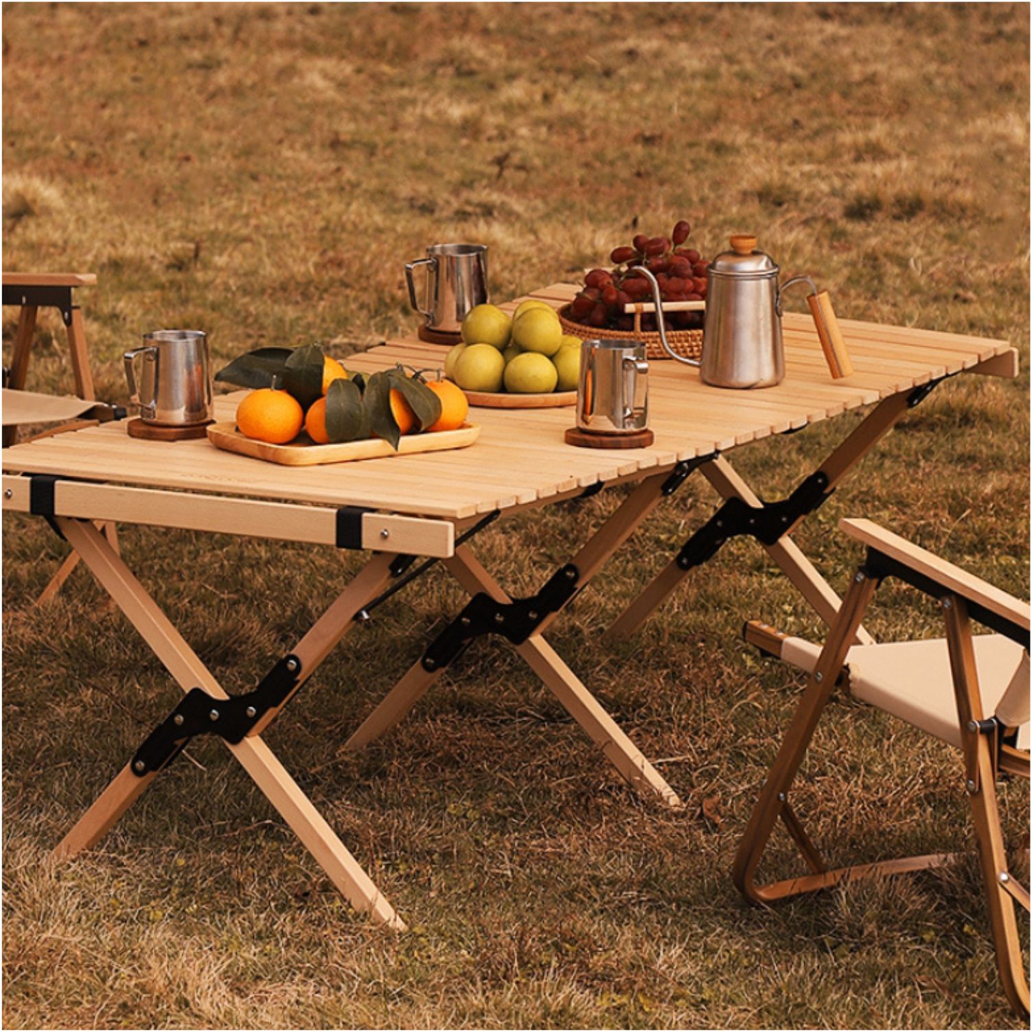 Premium Quality - The low picnic table is made of solid natural beech wood, so durable & compact in daily use. With strong hardware pieces connecting portable camping table, the folding picnic table is stable to hold your belongings.