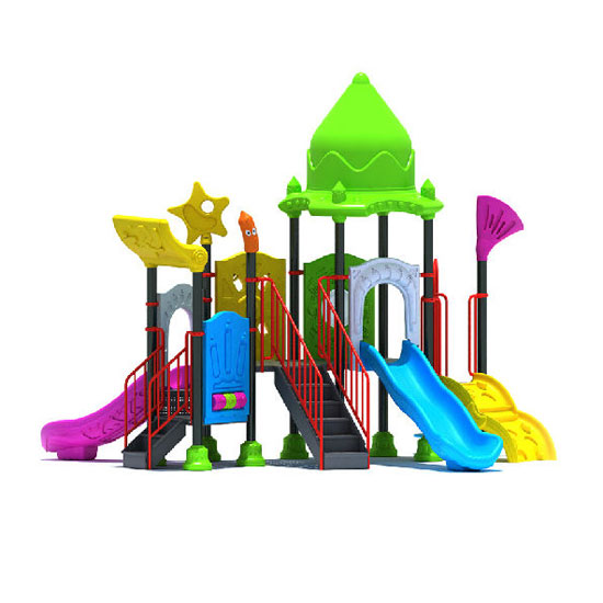 This playground is sturdily built with quality materials for outdoor use. It is an interesting construction that makes use of stairs and slides to provide children with excitement and fun. The vibrant and colorful design further introduces a lively touch.