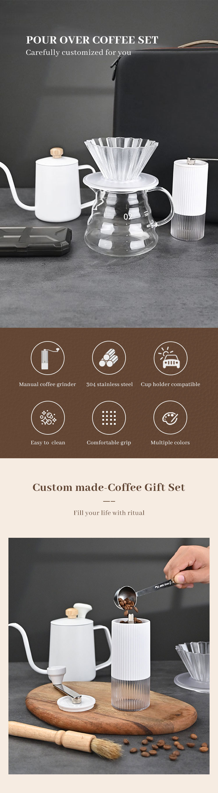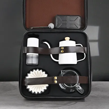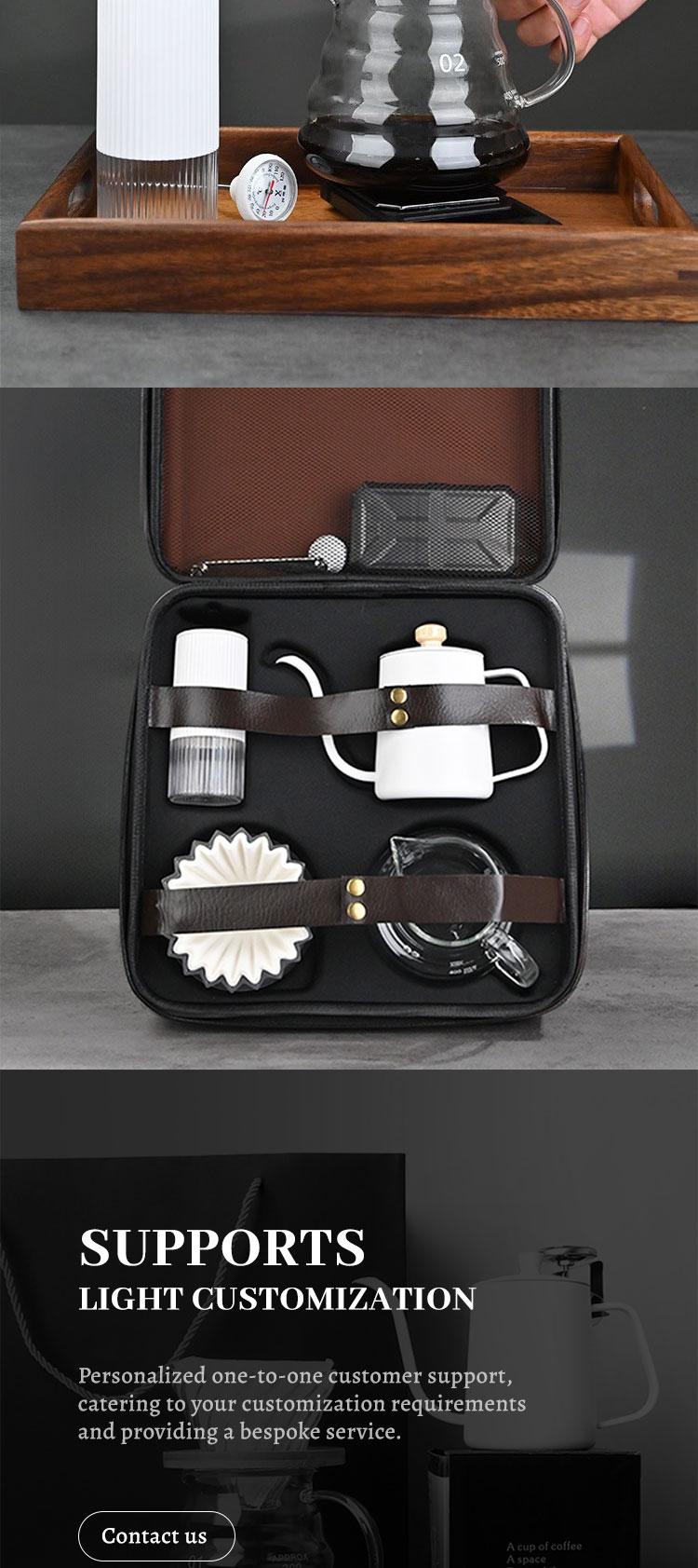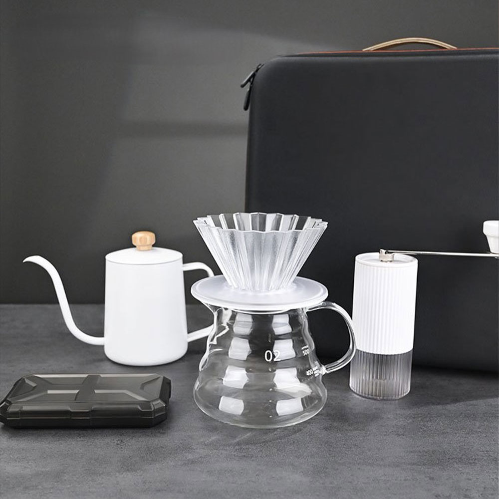 ① Resin origami filter cup + cup holder ② Cloud sharing pot (600ml) ③ Simple coffee grinder (steel core) ④ Y1 pour-over kettle (550ml) ⑤ Pocket electronic scale ⑥ Travel bag