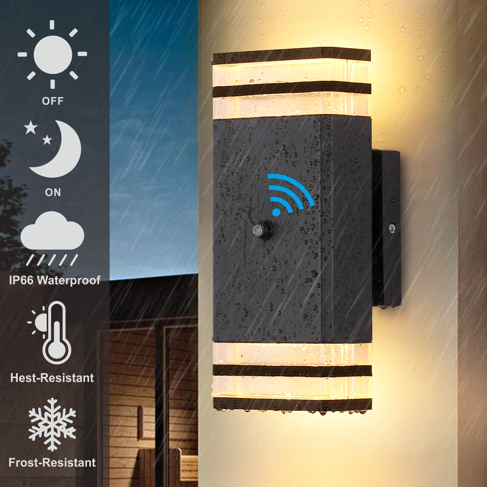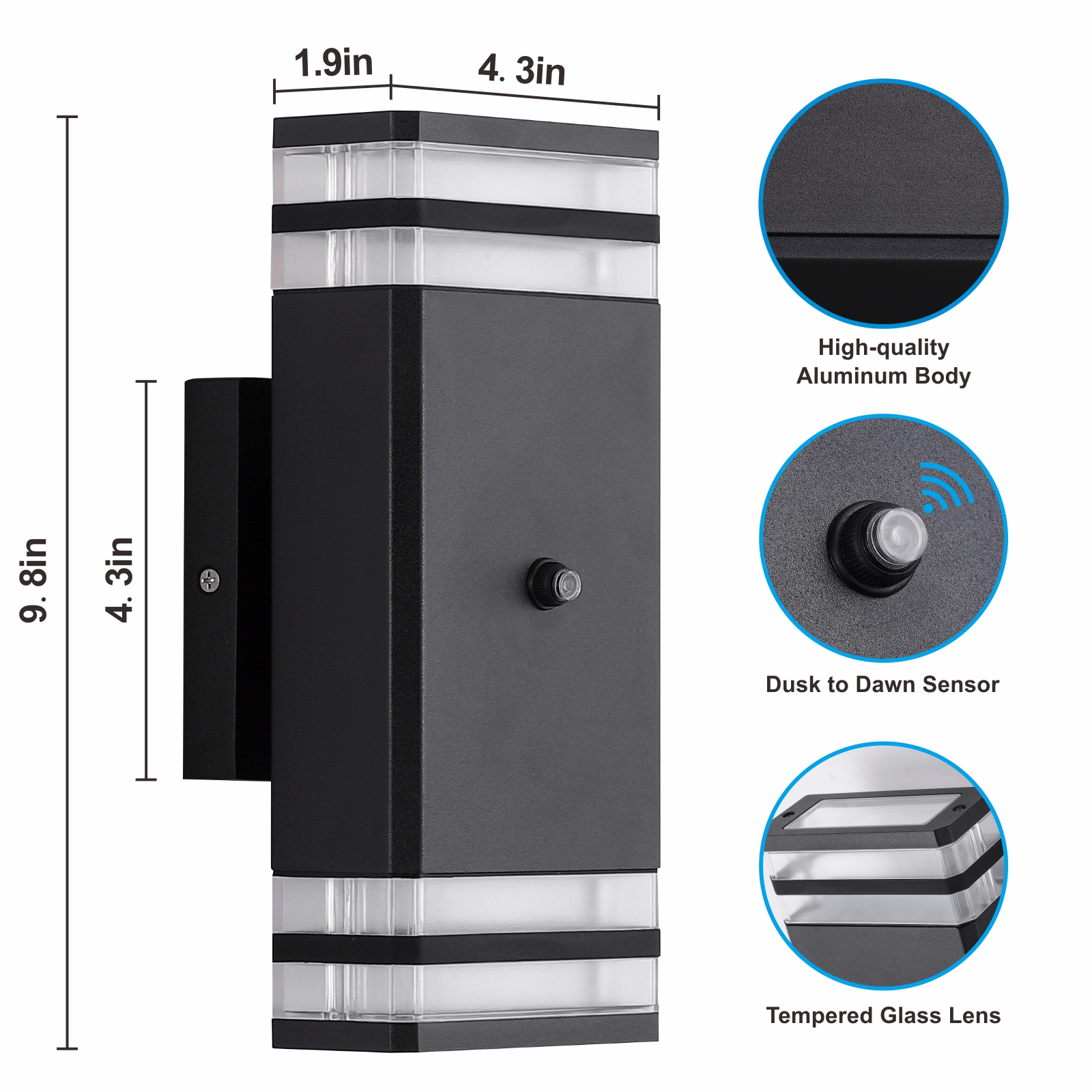 This Outdoor Sconce is built with a strong aluminum body and a clear tempered glass lens. It includes a dusk-to-dawn sensor that turns the light on at night and off during the day. With an IP66 waterproof rating, This Outdoor Sconce is perfect for outdoor use even in tough weather.