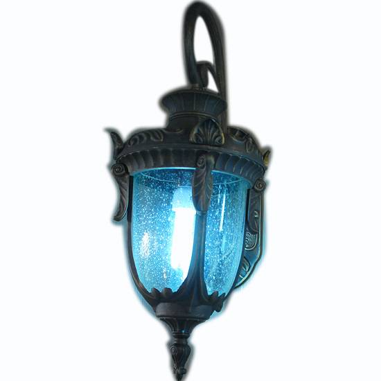 This is an outdoor wall lamp with a matt, bronze-tone finish. It boasts a metal frame with a clear glass panel. The artistic embossed patterns showcase a touch of vintage glamor. This outdoor lamp is widely applicable to main streets, branch roads, parks, uptowns and more.