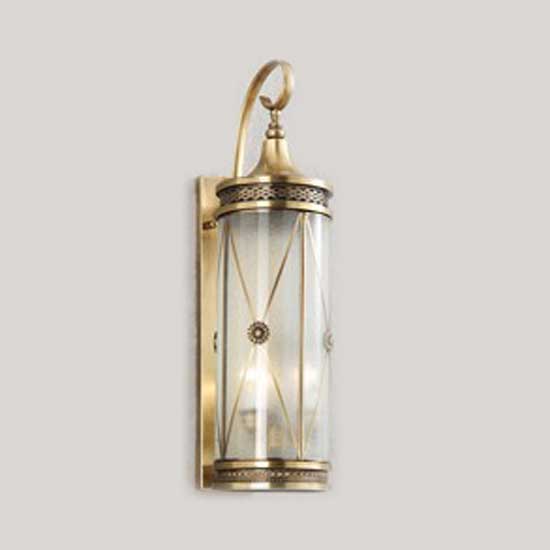 This Arabic-style outdoor wall lamp features a frosted glass shade accented by polished yellow brass. The high-performance outdoor wall light emits soft and warm light. The sturdy housing can withstand severe weather conditions.