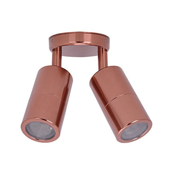 This is an outdoor wall light with a neat and fashionable design. It features a metal structure with a red coating. This light comes with two heads for wide luminous distribution.