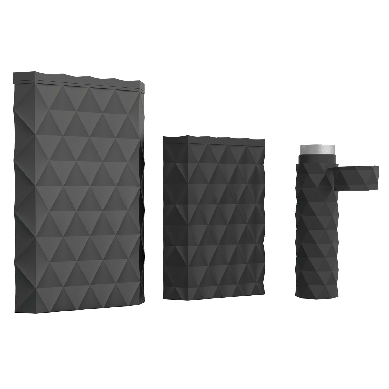 This outdoor power bank family comprises three powerbanks in distinct sizes: one in a cylindrical design and two relatively larger, rectangular ones. Finished with allover seamless prism pattern, these charger look modern and stylish. The housing are design rugged to offer excellent protection against ambient shock, water and dust.