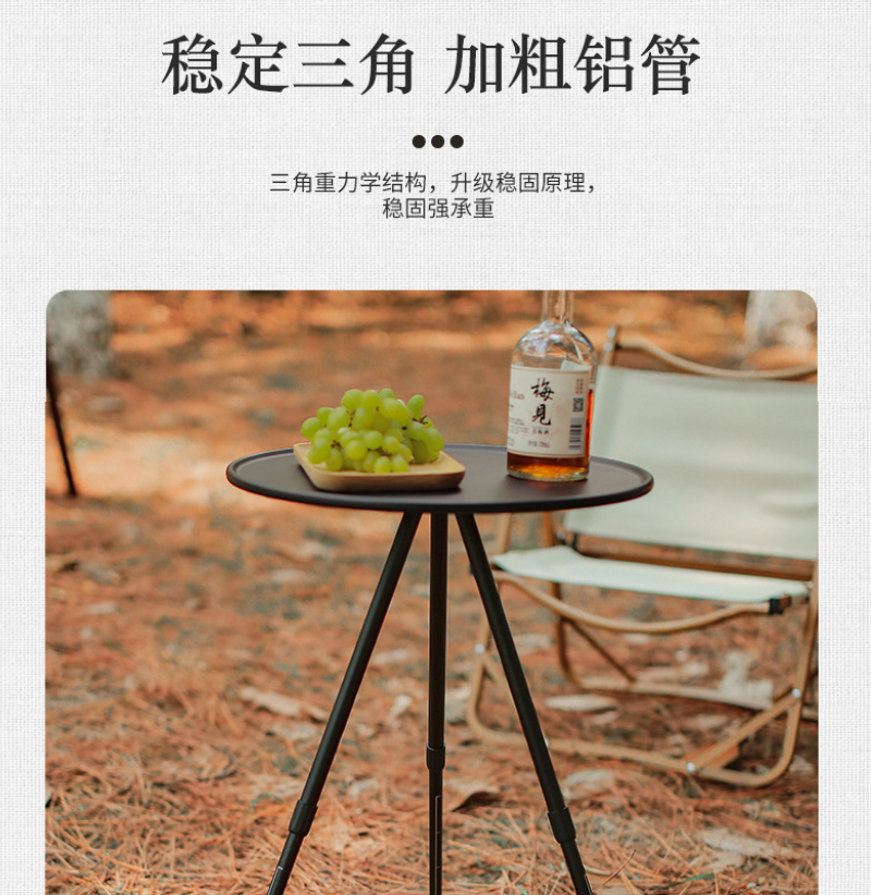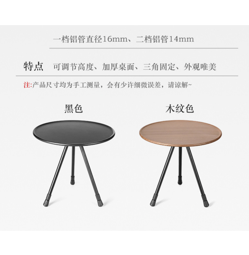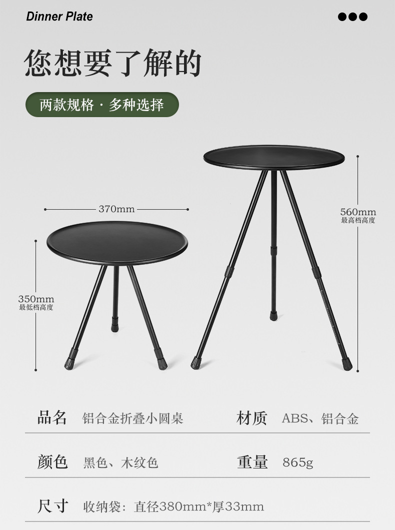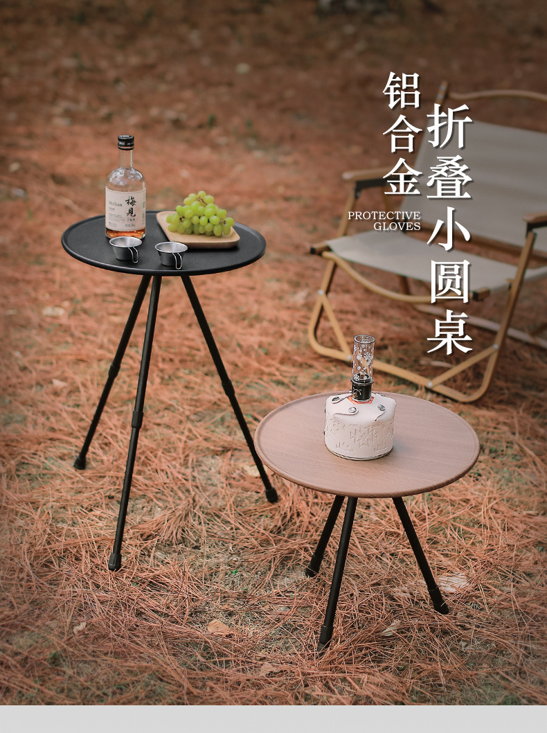 Outdoor aluminum alloy folding small round table portable liftable black table dining table camping table camping foldable table ultra-light coffee table