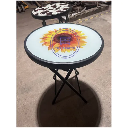 Beautiful occational accent table, any print can be achieved. foldable design. Tempered glass table top.