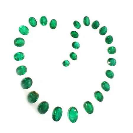 The oval cut emerald exhibits a clear, pleasingly simple contour. It owns a vibrant green tone with multiple glossy facets. The stone will add class and visual interest to any fine jewelry creations.