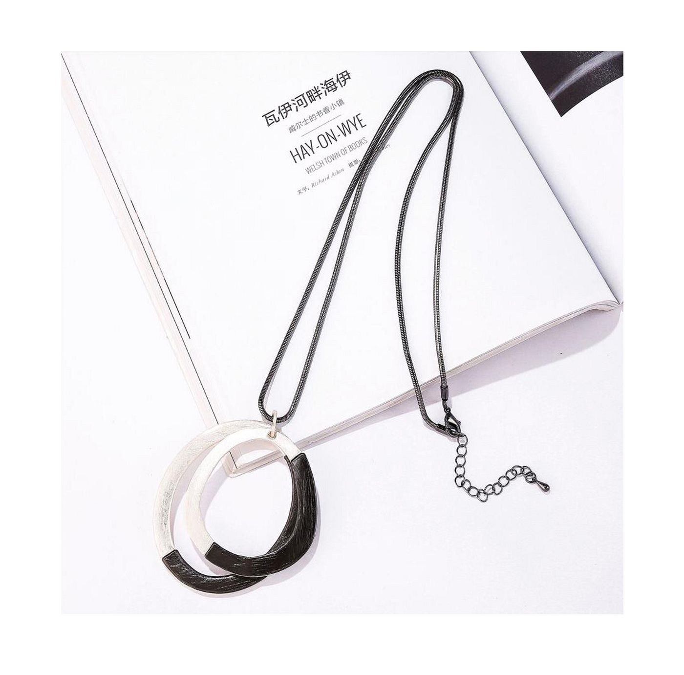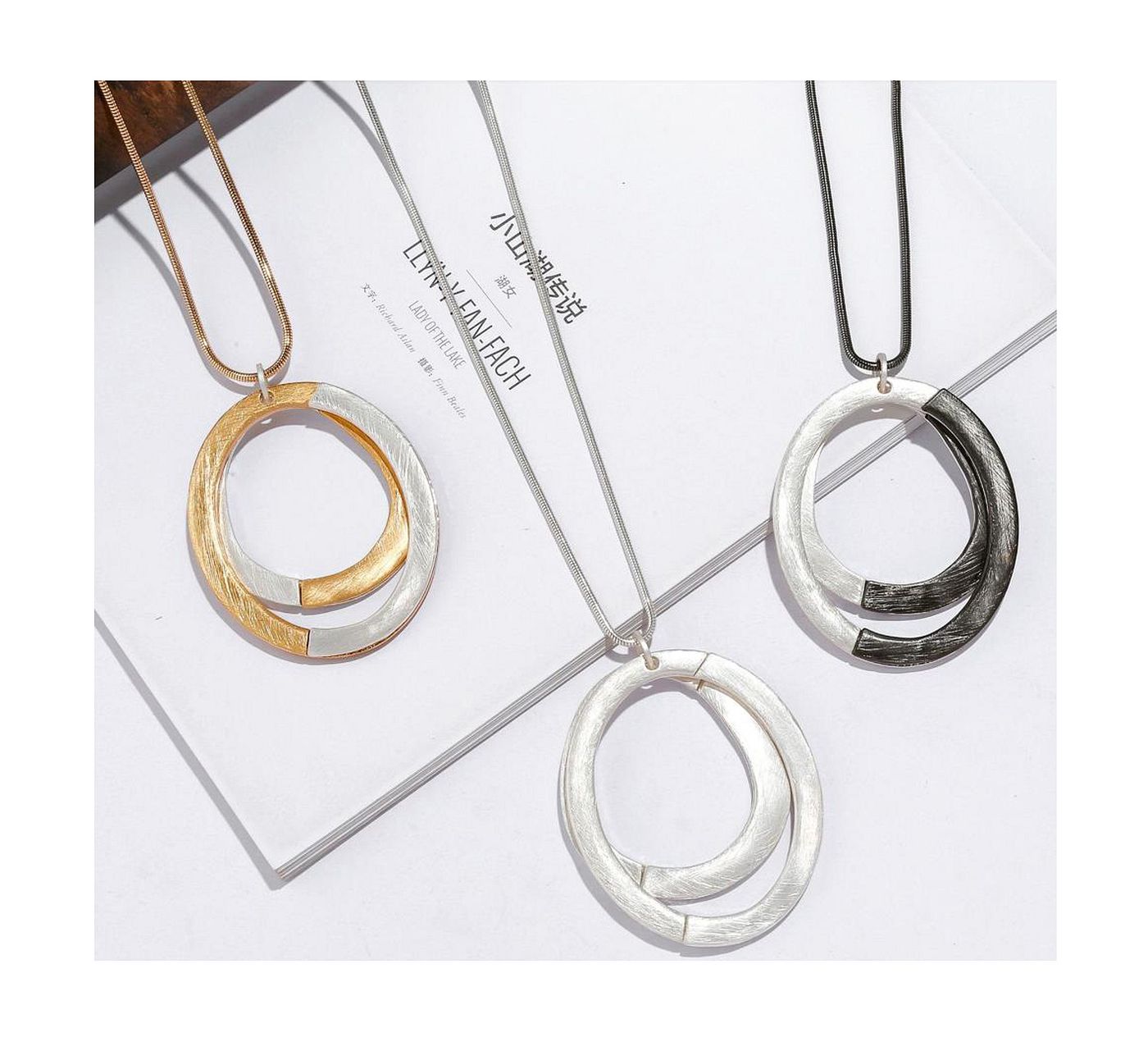 As shown is a high-fashion oval pendant alloy parts jewelry stainless steel necklace.