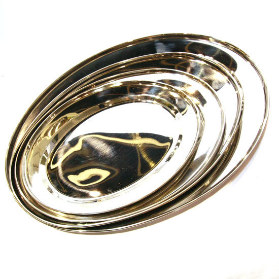 These pictured platters are made of fine stainless steel for trusted quality and durability. The platters serve your dishes on the dining table with style. These platters are easy to clean with mild detergents.
