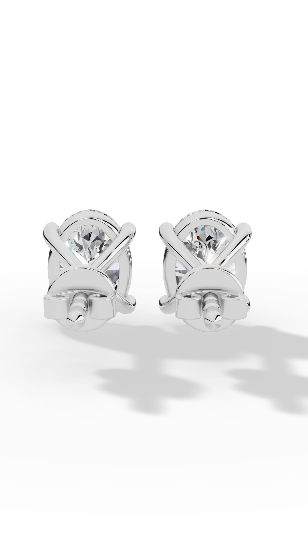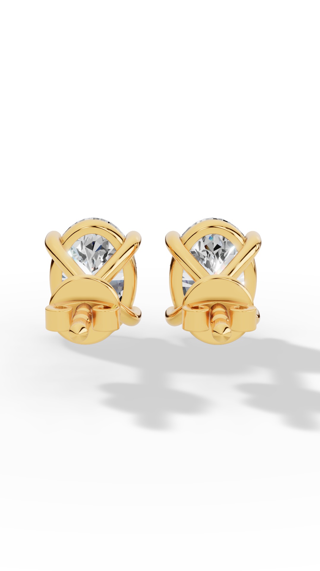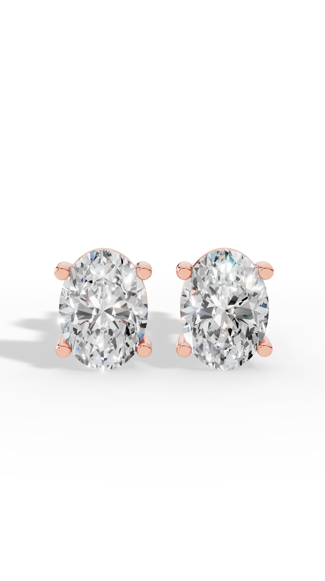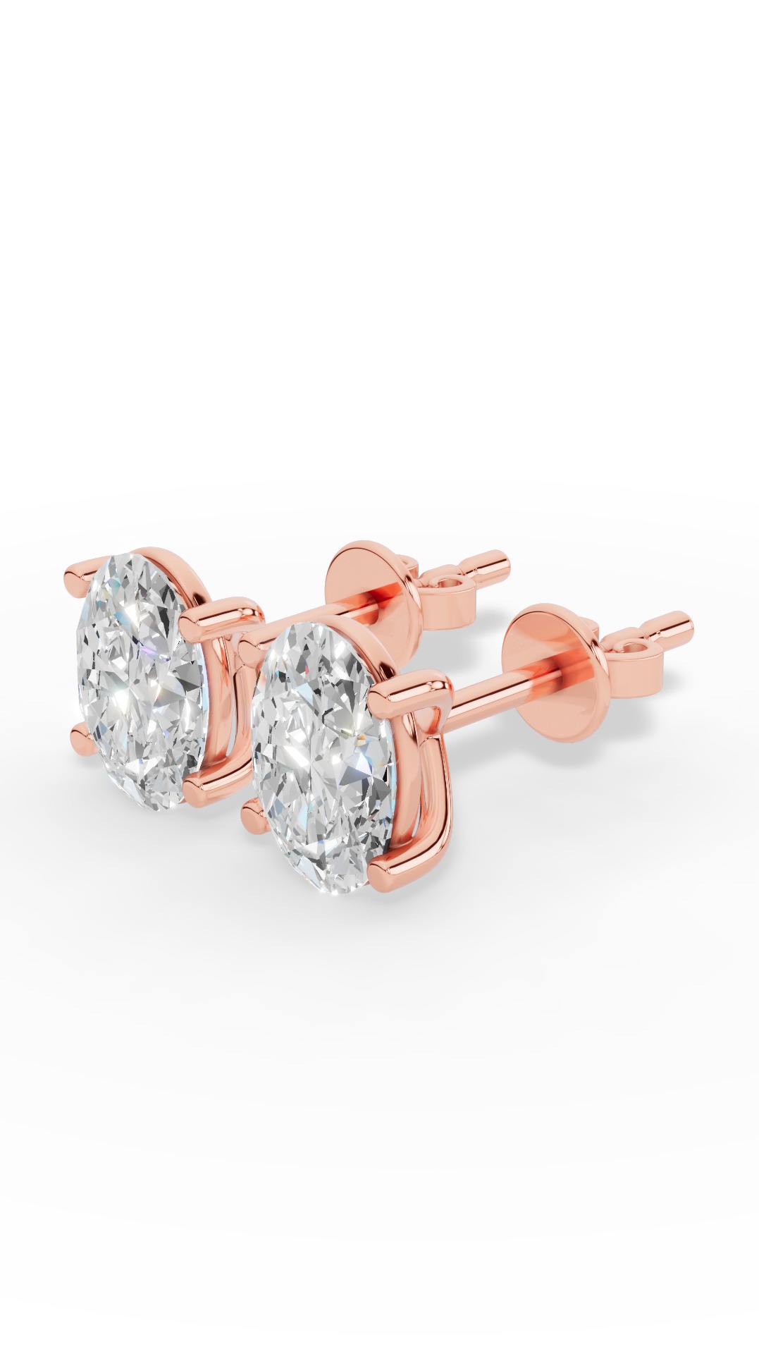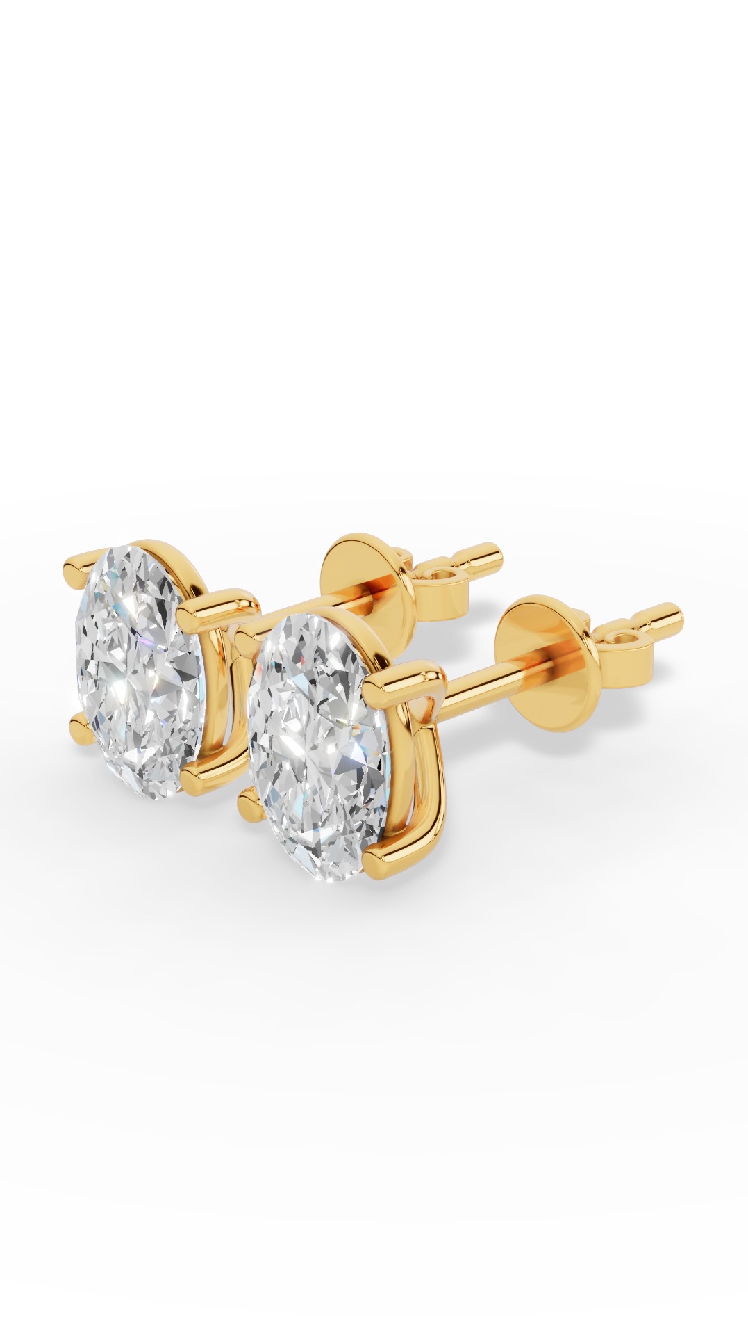 The oval cut four prong solitaire lab-grown diamond stud earrings showcase an elongated oval diamond securely set in four prongs, offering classic brilliance with a sleek, elegant silhouette.